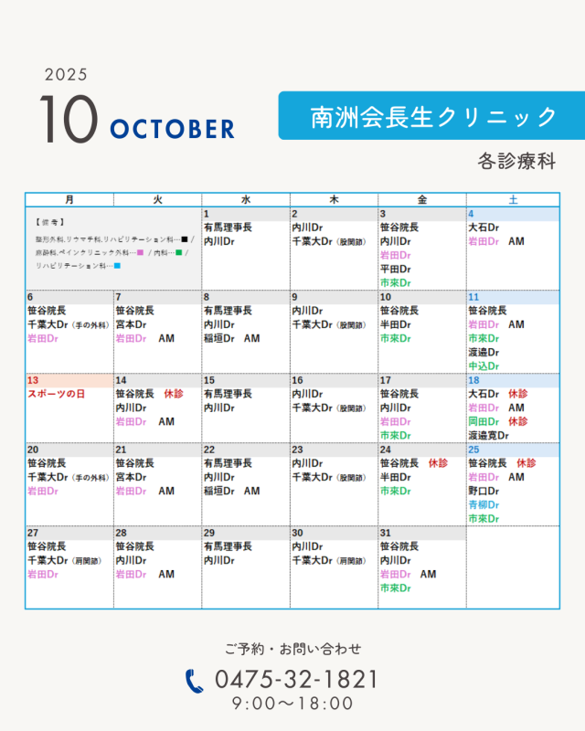 10月の診療予定